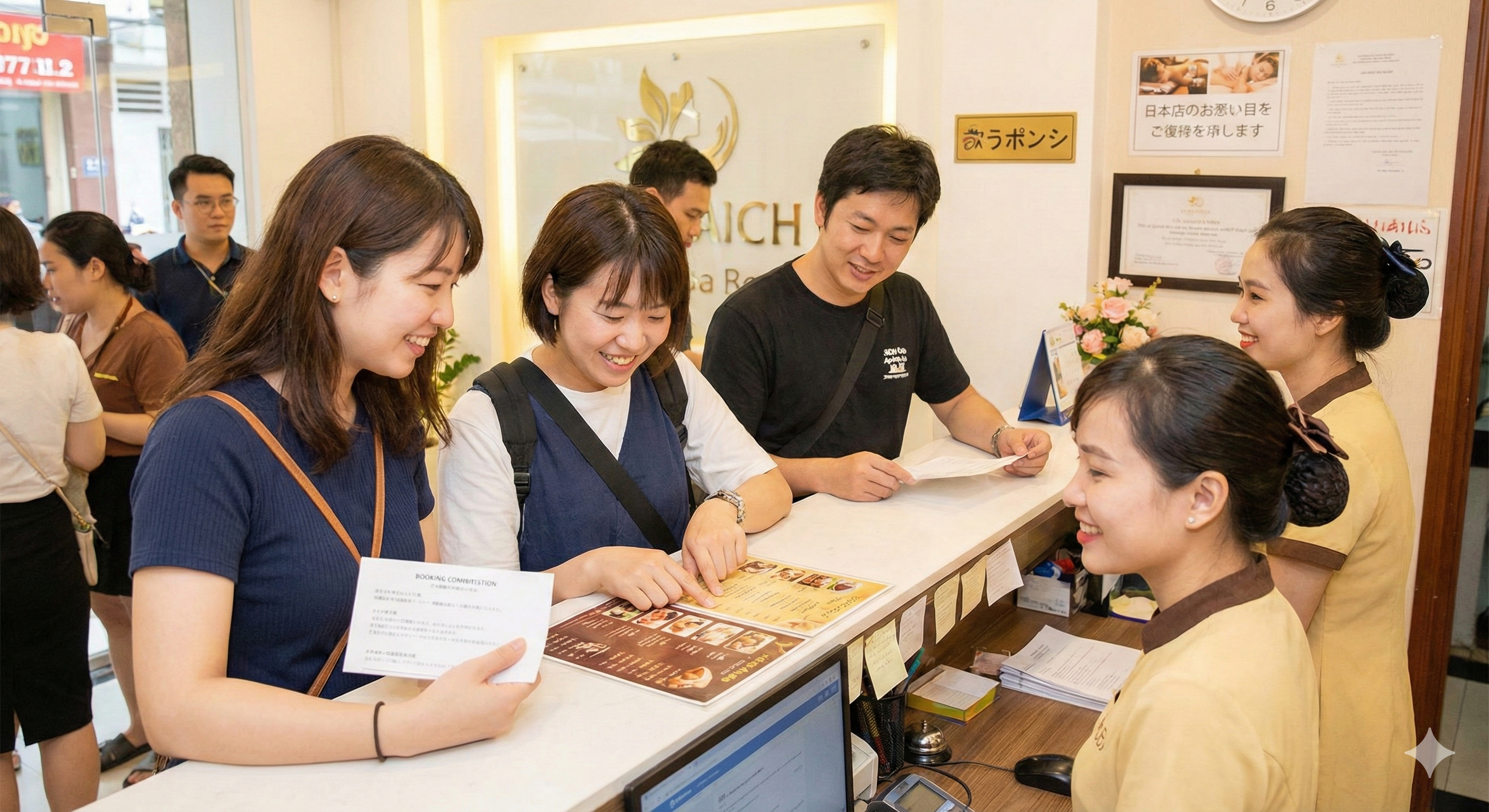 ベトナム到着後であれば、ホテルから電話で予約してもらうのも一つの方法です。ホテルのコンシェルジュは、現地の情報に詳しいため、おすすめの店や空いている時間帯を教えてくれることもあります。