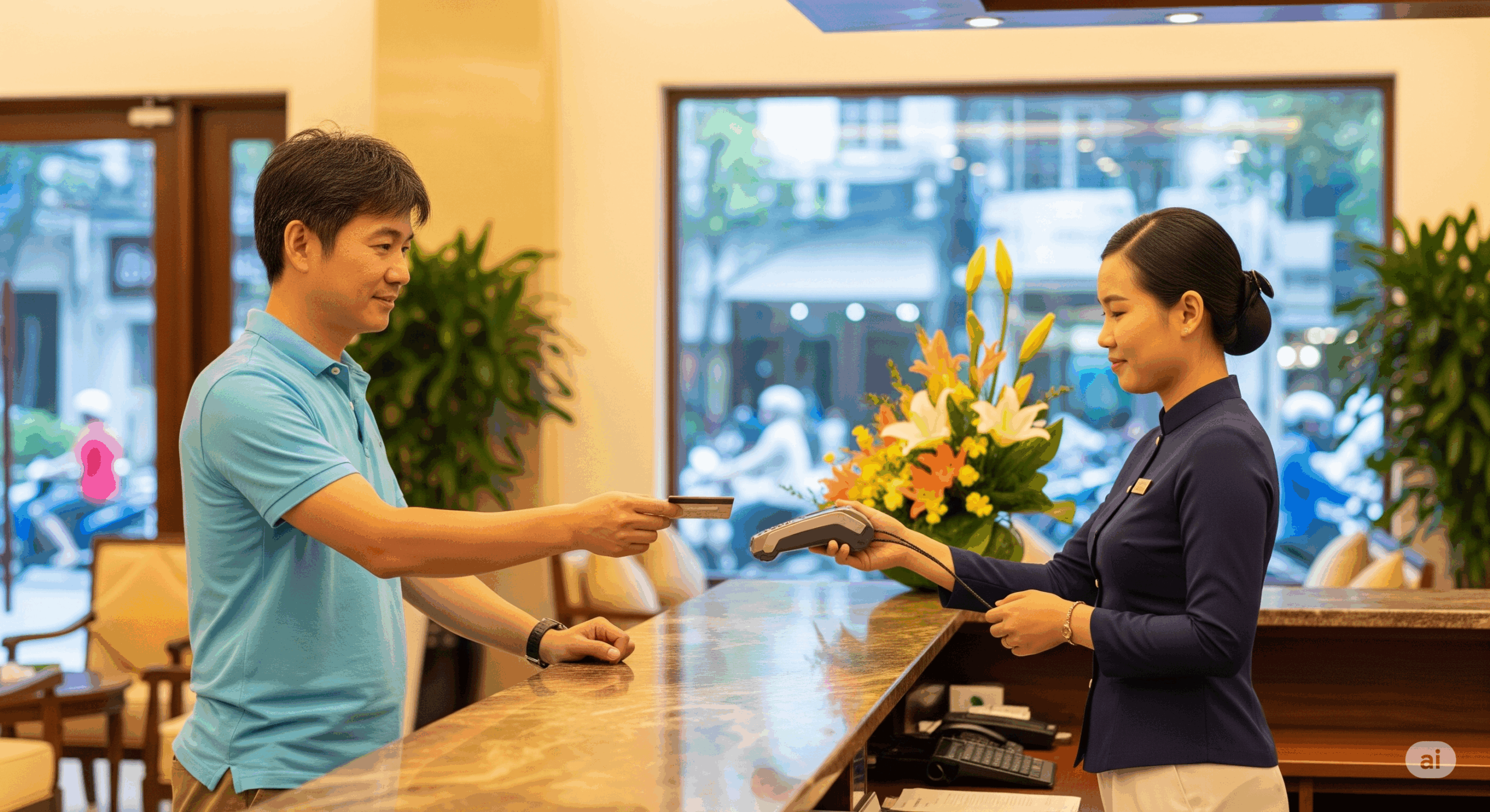 一方、現地支払いを選択した場合、支払いはチェックアウト時にベトナムドン(VND)や米ドルで行うことになります。この時のレートは、宿泊当日のホテル独自のレートが適用されることが多く、市場のレートよりも割高に設定されているケースが少なくありません。クレジットカードで現地払いをする場合も、海外利用手数料がかかるため、結果的に事前決済よりも高くなる可能性があります。